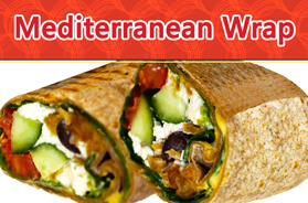 Romaine, Feta Cheese, Tomatoes, Cucumber, Crispy Onions, Hummus, Tahini on Whole Wheat Wrap