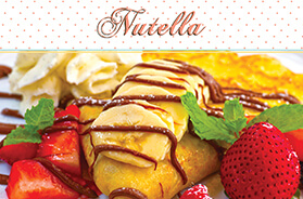 Nutella Hazelnut Chocolate, Banana, Strawberry. Side: Whipped Cream